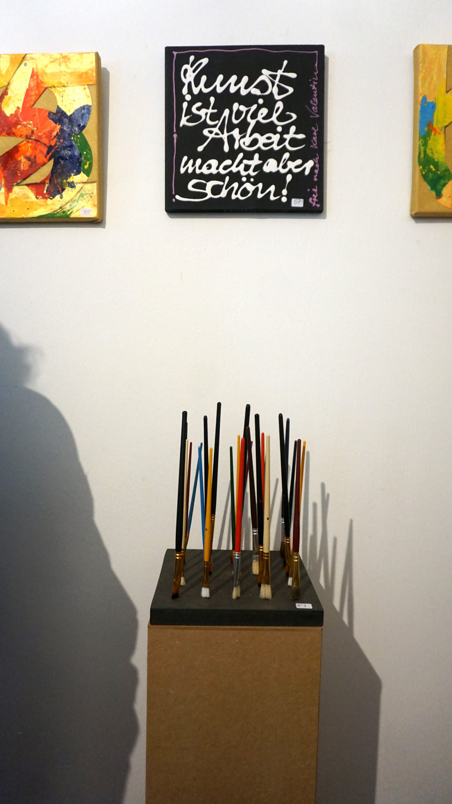 Wir sind 70 Künstlerinnen und Künstler aus Weilheim und Umgebung und anlässlich des freudigen Anlasses stellen wir unsere Werke im Format 25*25 aus. Etwa 30 Kreative sind dabei und freuen sich über zahlreiches Interesse, angeregte Gespräche und ganz nebenbei auch über den einen oder anderen Ankauf.
